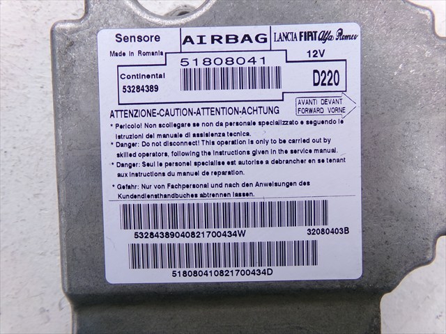 CENTRALITA AIRBAG para LANCIA DELTA 1.6 JTD 2008-2014 con código de motor 198A2000 y referencia: 51808041. Encuentra cualquier otro recambio de ELECTRICIDAD para la marca LANCIA y compralo 100% online con envío inmediato. Recambios y repuestos de segunda mano para coches. Para cualquier duda llámanos.