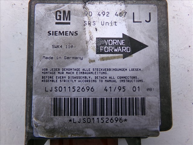 CENTRALITA AIRBAG para OPEL OMEGA 2.5 TD 1994-2003 con código de motor 25DT y referencia: 90 492 467 LJ. Encuentra cualquier otro recambio de ELECTRICIDAD para la marca OPEL y compralo 100% online con envío inmediato. Recambios y repuestos de segunda mano para coches. Para cualquier duda llámanos.