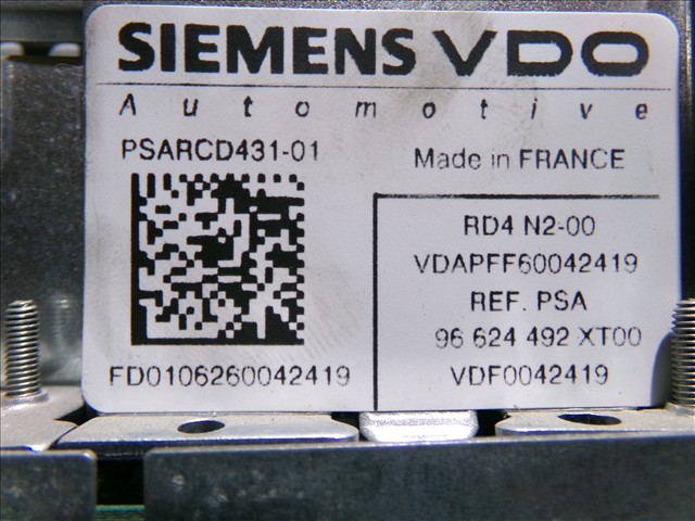 RADIO/CD para PEUGEOT 207 1.4 G 2006-2014 con código de motor KFU y referencia: 96624492 XT00. Encuentra cualquier otro recambio de INTERIOR para la marca PEUGEOT y compralo 100% online con envío inmediato. Recambios y repuestos de segunda mano para coches. Para cualquier duda llámanos.