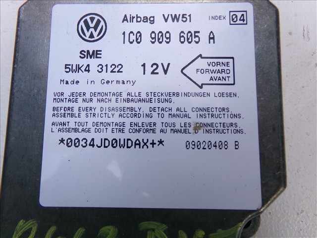 CENTRALITA AIRBAG para VOLKSWAGEN BORA 1.9 TDI 1998-2005 con código de motor ATD y referencia: 1C0 909 605 A. Encuentra cualquier otro recambio de ELECTRICIDAD para la marca VOLKSWAGEN y compralo 100% online con envío inmediato. Recambios y repuestos de segunda mano para coches. Para cualquier duda llámanos.