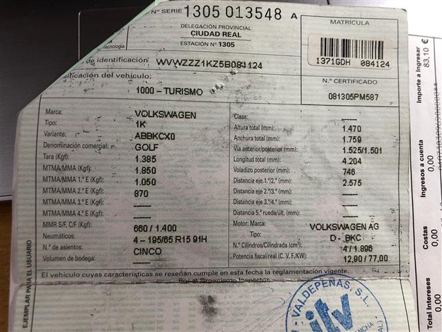 ¡Este producto es 100% compatible con Volkswagen Golf 1.9 TDI (2008)!