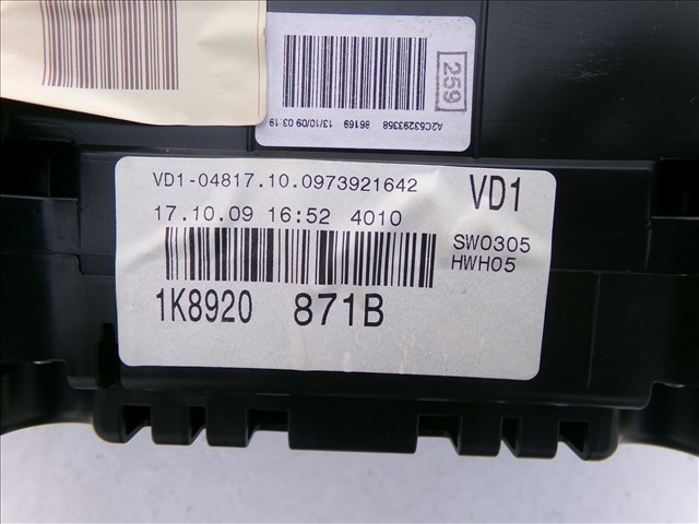 CUADRO MANDOS para VOLKSWAGEN SCIROCCO 1.4 TSI 2008-2014 con código de motor CAX y referencia: 1K8920871B. Encuentra cualquier otro recambio de ELECTRICIDAD para la marca VOLKSWAGEN y compralo 100% online con envío inmediato. Recambios y repuestos de segunda mano para coches. Para cualquier duda llámanos.