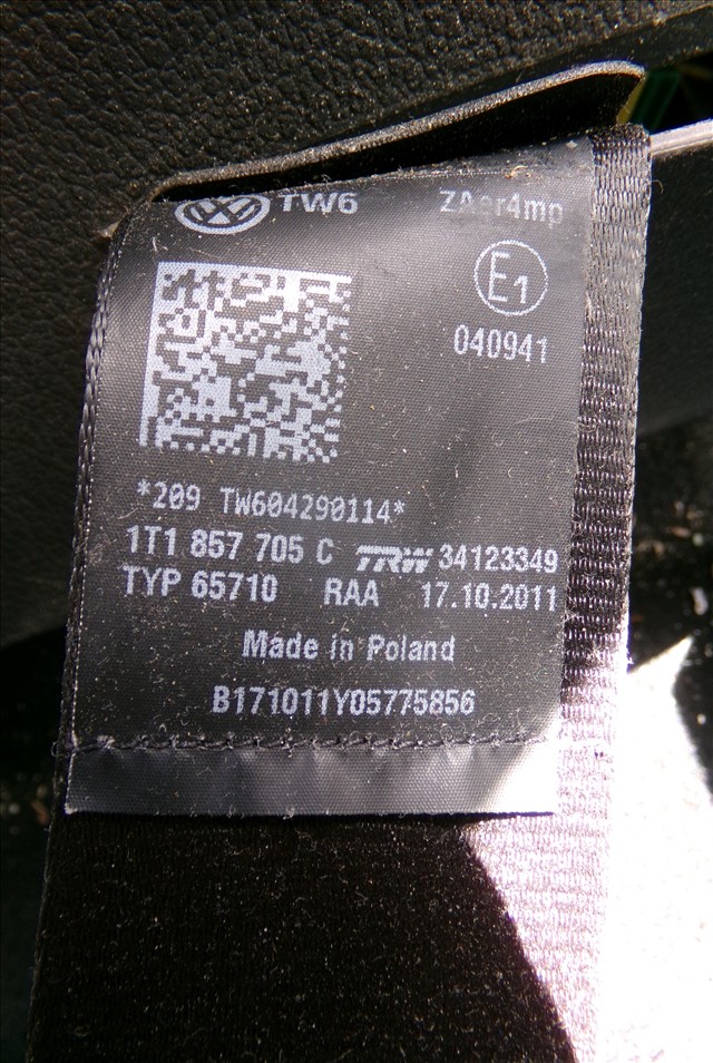 CINTURON DEL. IZQ. para VOLKSWAGEN TOURAN 1.6 TDI 2010-2015 con código de motor CAYC. Encuentra cualquier otro recambio de INTERIOR para la marca VOLKSWAGEN y compralo 100% online con envío inmediato. Recambios y repuestos de segunda mano para coches. Para cualquier duda llámanos.