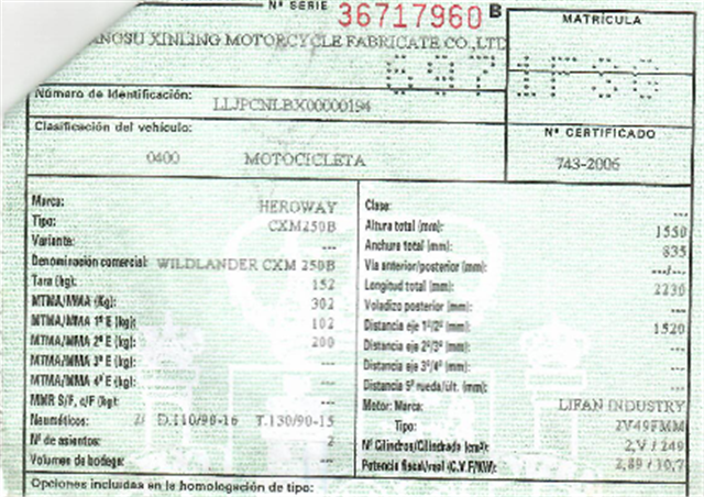 Bastidor LLJPCNLBX00000194