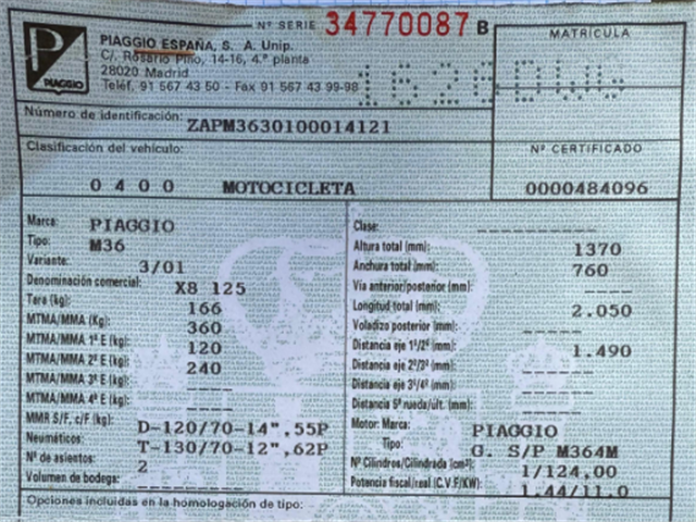 Modelo X8 125 (2006)