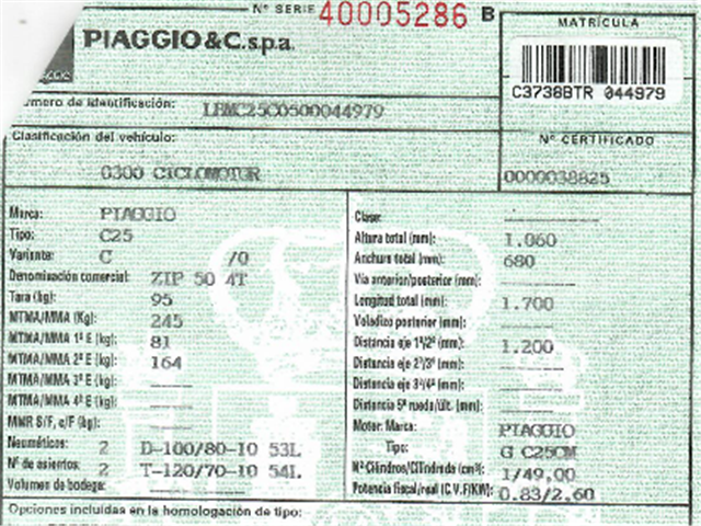¡Este producto es 100% compatible con Piaggio Zip 50 (2008)!