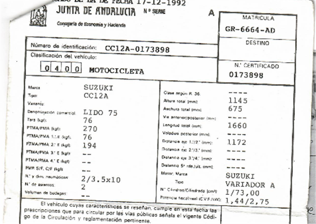 Bastidor 00000CC12A0173898