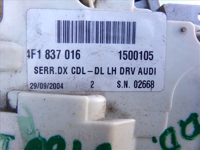 CERRADURA DEL. DCH. para AUDI A3 2.0 TDI MODELO 8P, 2003-2008 con código de motor BKD y referencia: 4F1 837 016. Encuentra cualquier otro recambio de CARROCERÍA LATERAL DCH. para la marca AUDI y compralo 100% online con envío inmediato. Recambios y repuestos de segunda mano para coches. Para cualquier duda llámanos.