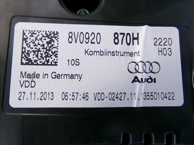 CUADRO MANDOS para AUDI A3 2.0 TDI 2013-2016 con código de motor CRB y referencia: 8V0920870H. Encuentra cualquier otro recambio de ELECTRICIDAD para la marca AUDI y compralo 100% online con envío inmediato. Recambios y repuestos de segunda mano para coches. Para cualquier duda llámanos.