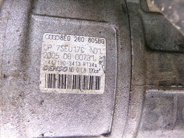 COMPRESOR A.A. para AUDI A4 1.9 TDI RANCHERA, 2000-2004 con código de motor AVF y referencia: 8E0 260 805BG. Encuentra cualquier otro recambio de CLIMATIZACIÓN para la marca AUDI y compralo 100% online con envío inmediato. Recambios y repuestos de segunda mano para coches. Para cualquier duda llámanos.