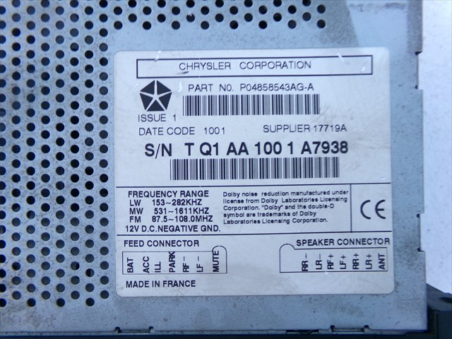 RADIO/CD para CHRYSLER VOYAGER 2.5 CRD 2000-2004 con código de motor VM98B y referencia: T Q1 AA 100 1 A7938. Encuentra cualquier otro recambio de INTERIOR para la marca CHRYSLER y compralo 100% online con envío inmediato. Recambios y repuestos de segunda mano para coches. Para cualquier duda llámanos.