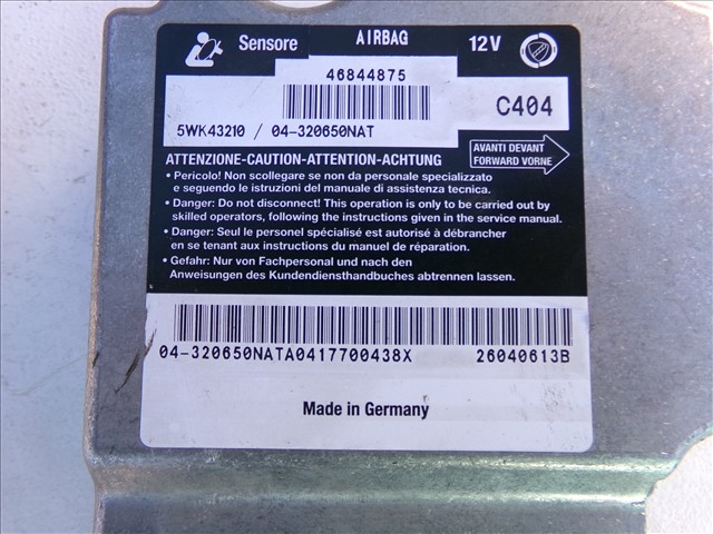 CENTRALITA AIRBAG para FIAT MULTIPLA 1.9 JTD 2005-2010 con código de motor 186A8000 y referencia: 5WK43210. Encuentra cualquier otro recambio de ELECTRICIDAD para la marca FIAT y compralo 100% online con envío inmediato. Recambios y repuestos de segunda mano para coches. Para cualquier duda llámanos.