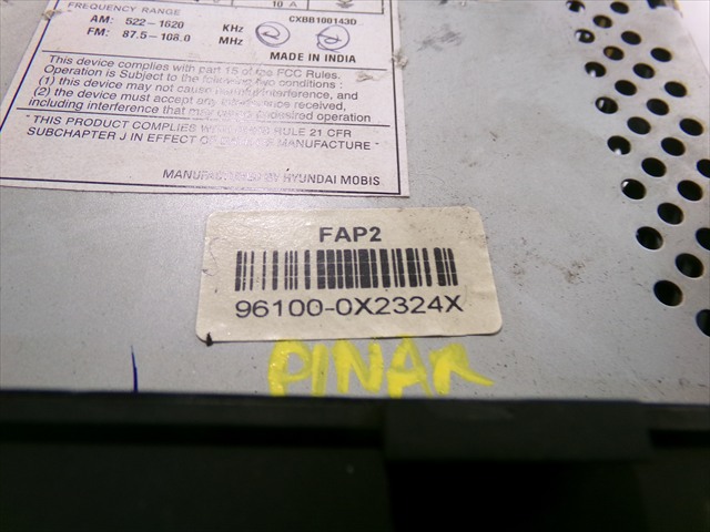 RADIO/CD para HYUNDAI I10 1.2 G 2011-2013 con código de motor G4LA y referencia: 961000X2324X. Encuentra cualquier otro recambio de INTERIOR para la marca HYUNDAI y compralo 100% online con envío inmediato. Recambios y repuestos de segunda mano para coches. Para cualquier duda llámanos.