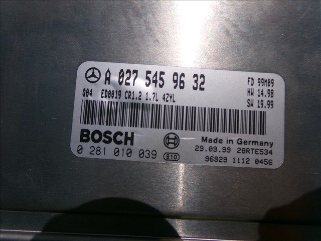 CENTRALITA MOTOR (ECU) para MERCEDES A 170 1.7 D W168,1998-2004 con código de motor 668940 y referencia: 0 281 010 039. Encuentra cualquier otro recambio de ELECTRICIDAD para la marca MERCEDES y compralo 100% online con envío inmediato. Recambios y repuestos de segunda mano para coches. Para cualquier duda llámanos.