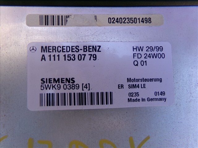CENTRALITA MOTOR (ECU) para MERCEDES CLK 230 2.3 G W208,1997-2003 KOMPRESSOR con código de motor 111 y referencia: A 111 153 07 79. Encuentra cualquier otro recambio de ELECTRICIDAD para la marca MERCEDES y compralo 100% online con envío inmediato. Recambios y repuestos de segunda mano para coches. Para cualquier duda llámanos.