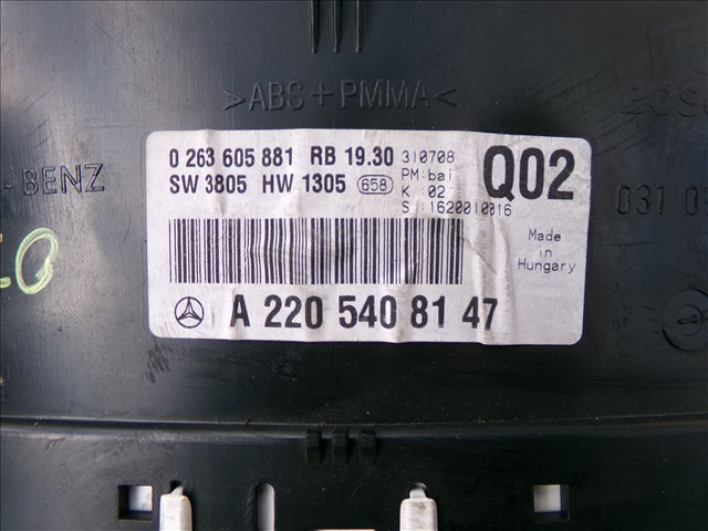 CUADRO MANDOS para MERCEDES S 320 3.2 CDI W220,1998-2005 con código de motor 613960 y referencia: 0 263 605 881. Encuentra cualquier otro recambio de ELECTRICIDAD para la marca MERCEDES y compralo 100% online con envío inmediato. Recambios y repuestos de segunda mano para coches. Para cualquier duda llámanos.