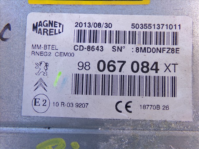 RADIO/CD para PEUGEOT EXPERT 2.0 HDI 2007-2016 con código de motor RH02 y referencia: 98 067 084 XT. Encuentra cualquier otro recambio de INTERIOR para la marca PEUGEOT y compralo 100% online con envío inmediato. Recambios y repuestos de segunda mano para coches. Para cualquier duda llámanos.