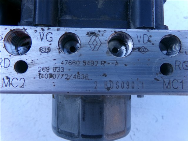 ABS para RENAULT CAPTUR 1.2 G 2013-2017 con código de motor H5FD4 y referencia: 47660 5492 R--A. Encuentra cualquier otro recambio de FRENOS para la marca RENAULT y compralo 100% online con envío inmediato. Recambios y repuestos de segunda mano para coches. Para cualquier duda llámanos.