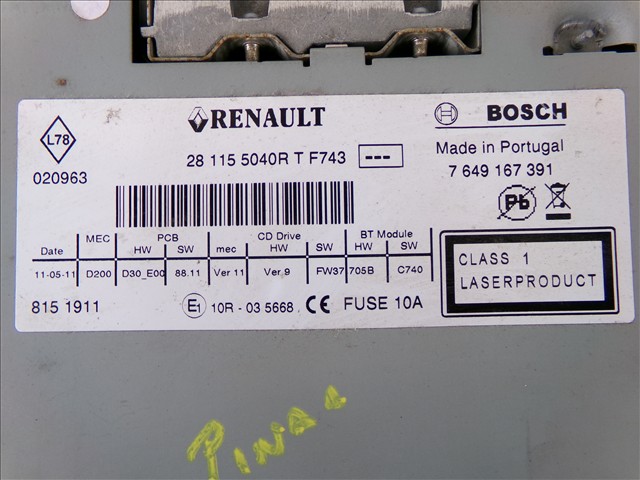 Radio Cd Renault Scenic 1.5 DCI 2009-2012 (2011)