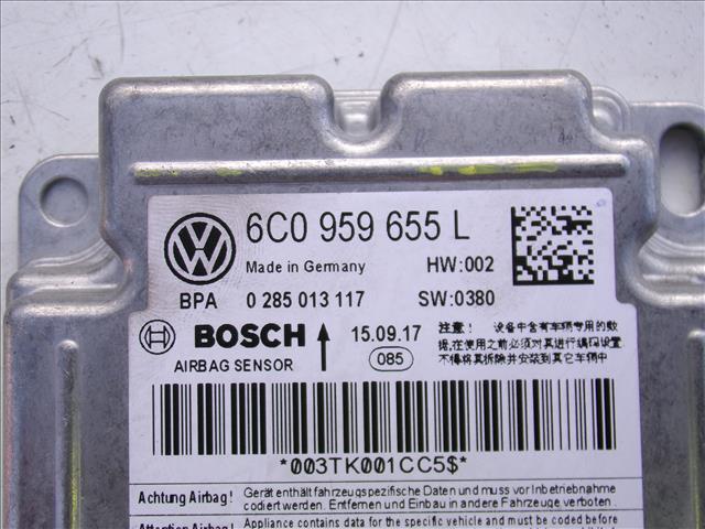 CENTRALITA AIRBAG para SEAT TOLEDO 1.6 TDI 2013-2017 con código de motor CXM y referencia: 0285 013 117 / 6C0 959 655L. Encuentra cualquier otro recambio de ELECTRICIDAD para la marca SEAT y compralo 100% online con envío inmediato. Recambios y repuestos de segunda mano para coches. Para cualquier duda llámanos.