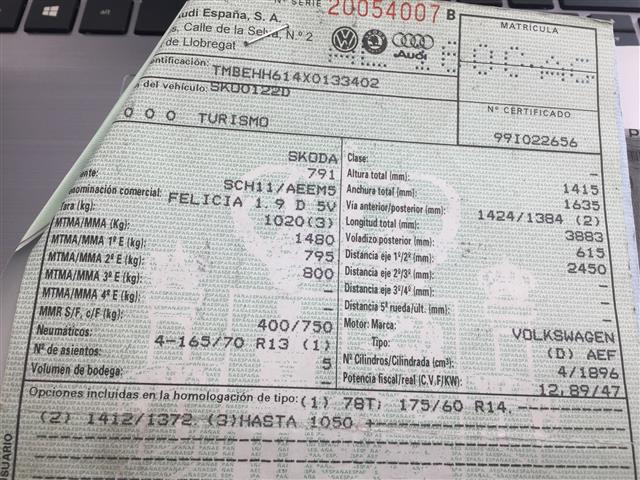 ¡Este producto es 100% compatible con Skoda Felicia 1.9 D (1999)!