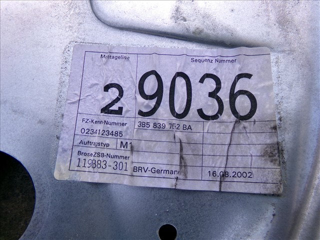 ELEVALUNAS MANUAL TRAS. DCH. para VOLKSWAGEN PASSAT 1.9 TDI 2000-2005 con código de motor AWX y referencia: 3B5 839 752 BA. Encuentra cualquier otro recambio de CARROCERÍA LATERAL DCH. para la marca VOLKSWAGEN y compralo 100% online con envío inmediato. Recambios y repuestos de segunda mano para coches. Para cualquier duda llámanos.